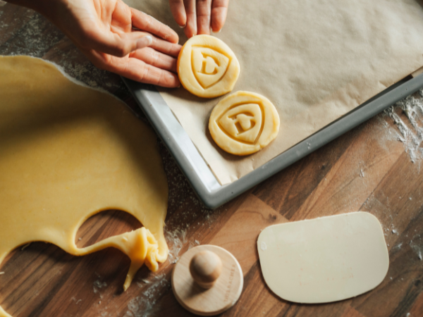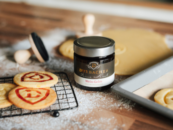 Das Produkt besteht aus einem Durbacher Keksstempel, Ausstecher und kleinen Rezeptheft im Baumwollbeutel verpackt.